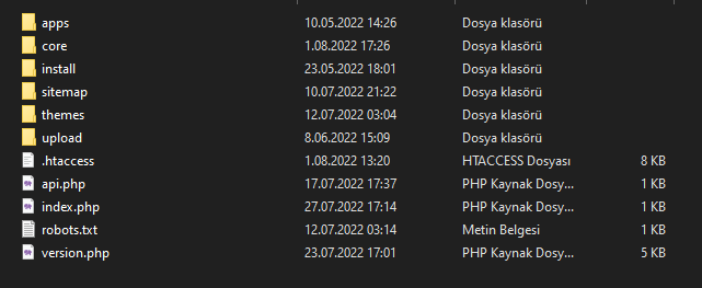 After making these settings, transfer the SQL file named " teskale-sm.sql " located in the main directory of the downloaded file into the database you have installed.