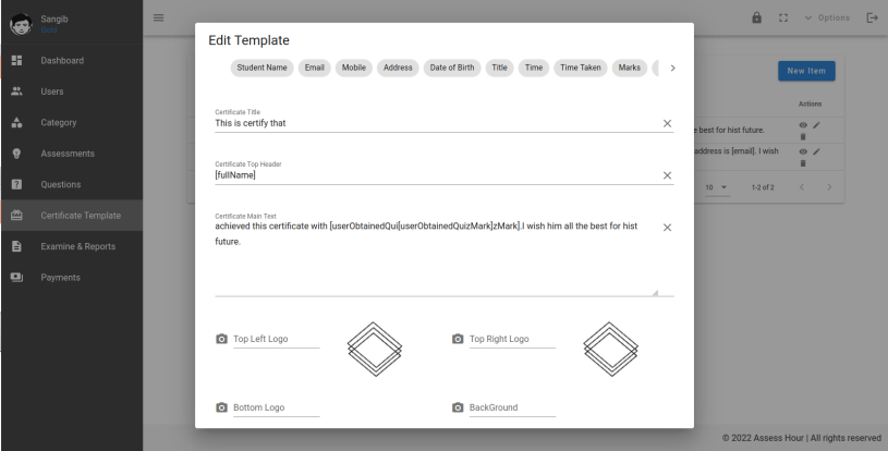 2.     Exam Settings ( Browser refresh end the exam , site logo on exam page)