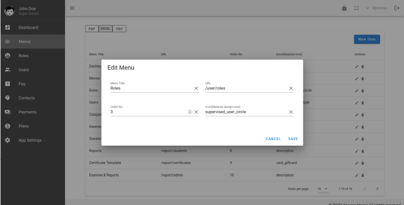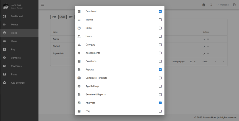 You will find three roles (Super Admin,Admin & Student) here. These roles are restricted to modify and delete because these are used for many configuration issues.
