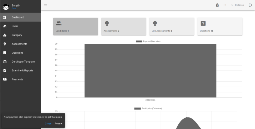 Also in dashboard you will see a message dialog box(see below image) if your existing subscription plan is expired and you can renew your plan by using that.