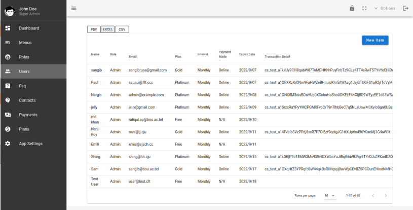 You will find all admin users here with there transaction detail, plan, plan interval, payment mode & others. Also you can manage offline transactions from here. You can add new users from here with transaction details.